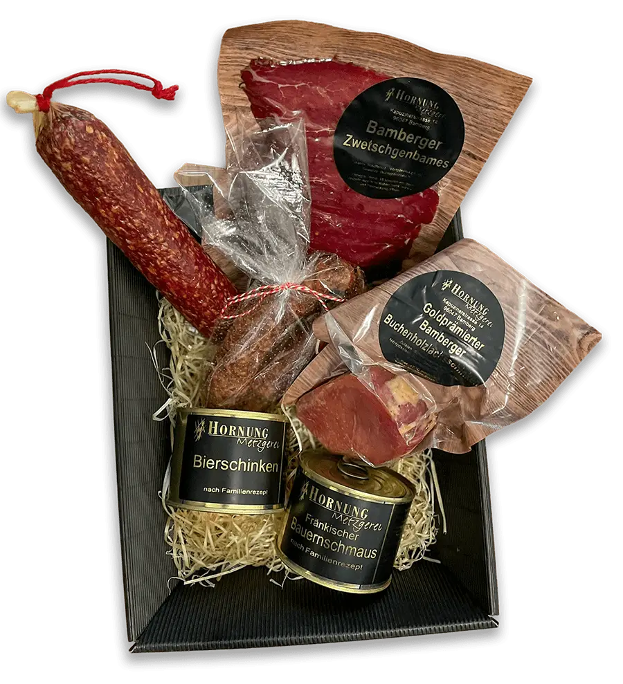 Seit 1904 steht die Metzgerei Hornung für echtes Bamberger Handwerk, regionale Qualität und ehrliche Produkte. In vierter Generation führen wir unseren Familienbetrieb mit Leidenschaft und Verantwortung – vom Einkauf des Fleisches bis zur eigenen Herstellung. Unsere traditionellen Rezepturen, bewährten Handwerksmethoden und der bewusste Verzicht auf Geschmacksverstärker garantieren Geschmack, dem man vertrauen kann. Qualität, die man sieht. Und schmeckt.