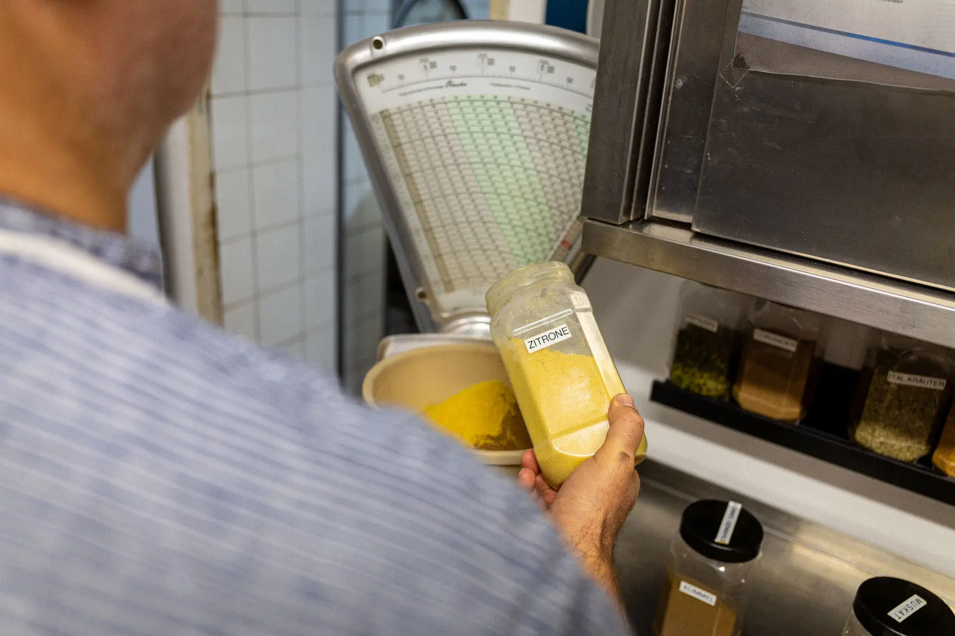Die Gewürze welche wir zur Herstellung unserer Wurstwaren und Schinken benützen, werden nach überlieferten Familienrezepten zusammengestellt und je nach Produkt individuell abgewogen. Daher können wir ohne Geschmacksverstärker, künstliche Aromen und Zusatzstoffe produzieren.